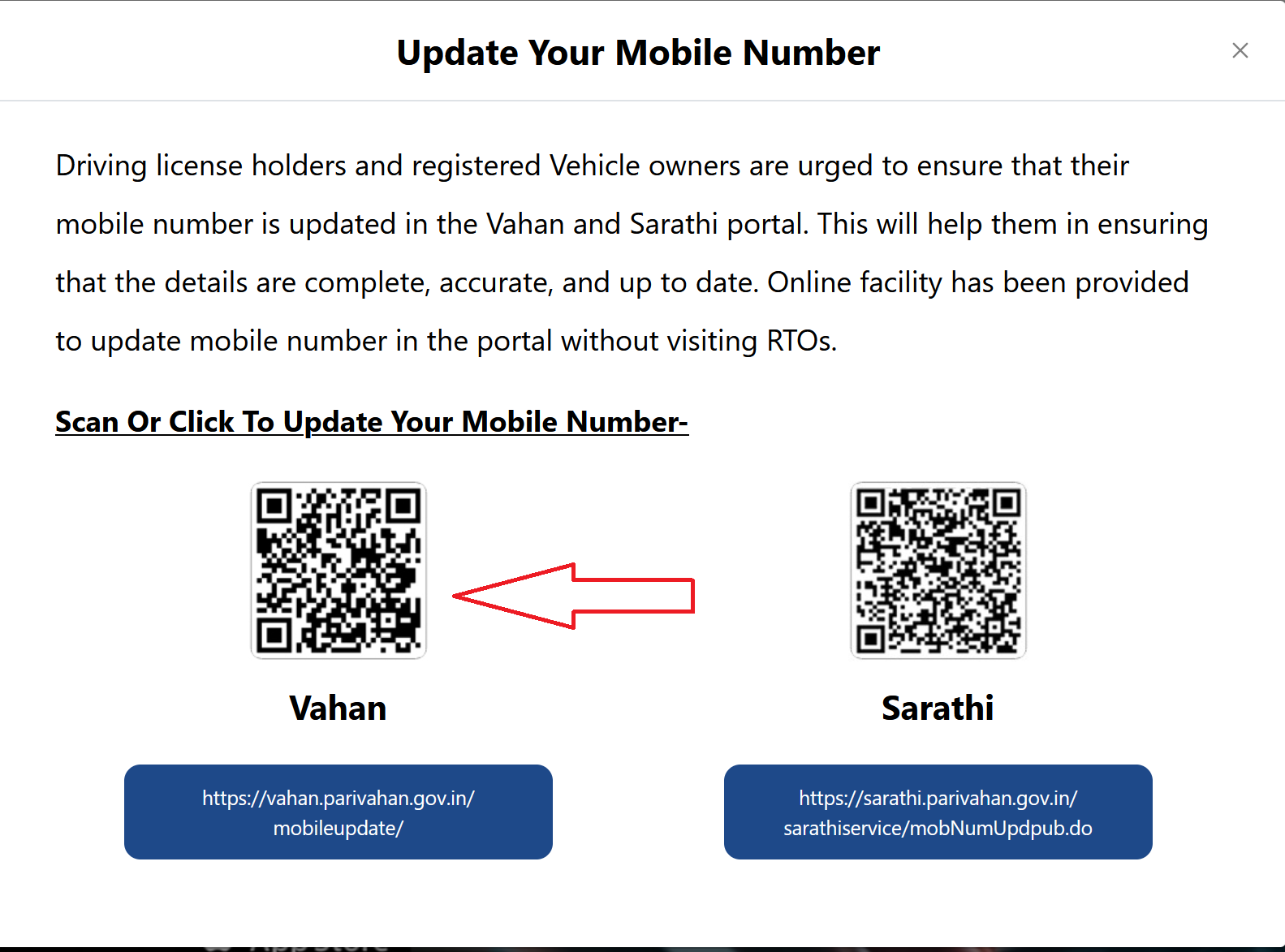 Even though both fall under Parivahan, they have separate databases. Updating your mobile number on one does NOT automatically update it on the other.