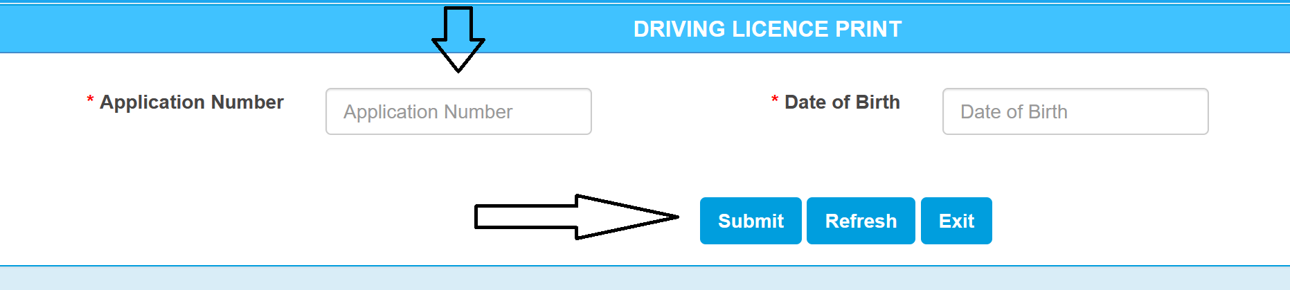 - Enter your DL Number (or Application Number) and Date of Birth.